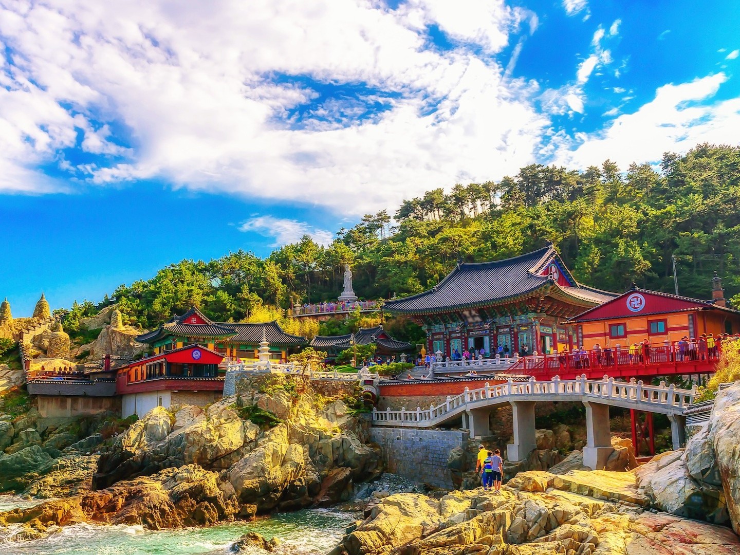 El Templo Haedong Yonggungsa es un templo budista junto al mar en Gijang-gun, Busan, famoso por su ubicación costera única con vistas al Mar del Este. Construido originalmente en 1376, es uno de los pocos templos coreanos situados junto al océano en lugar de en las montañas, lo que lo convierte en uno de los sitios espirituales más fotografiados y visitados de Busan.