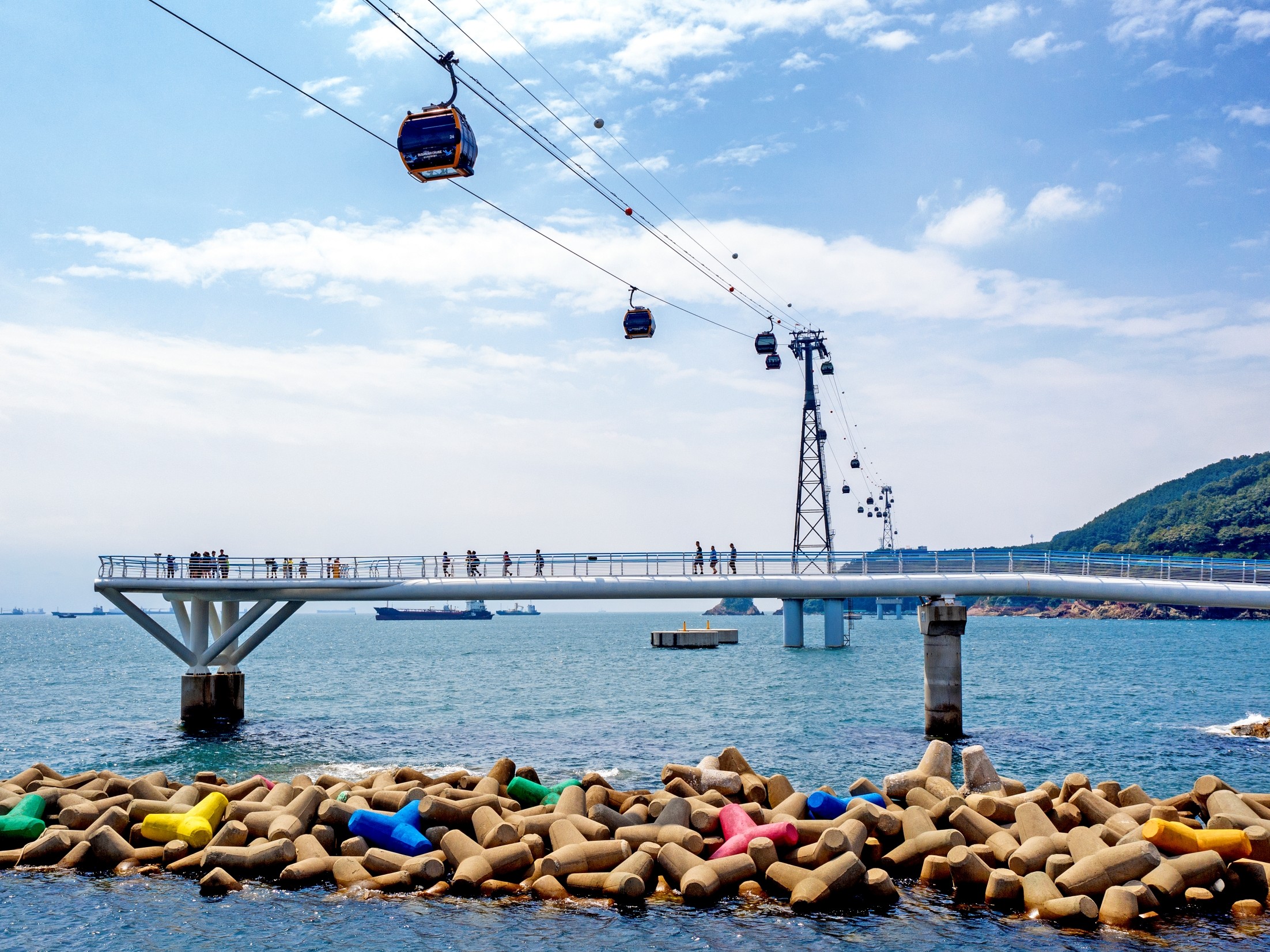 El teleférico Songdo (también conocido como Busan Air Cruise) es un ascensor aéreo costero en el área de Songdo Beach. Ofrece vistas panorámicas del océano, los acantilados y el skyline de la ciudad, lo que lo convierte en una de las atracciones más populares de Busan.