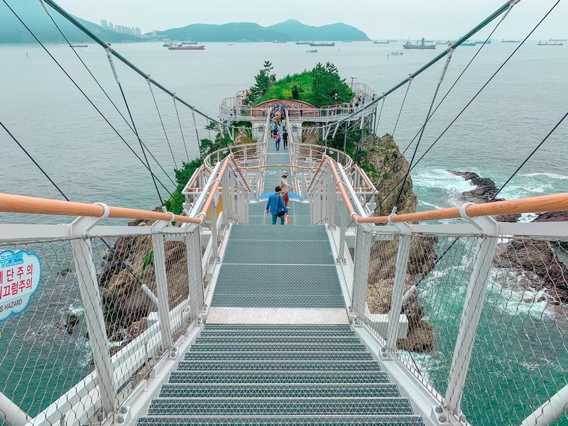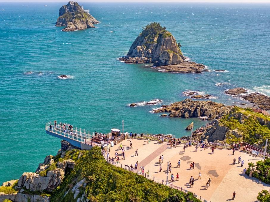 El Oryukdo Skywalk es una pasarela de cristal construida sobre acantilados con vistas al mar, donde los mares del Este y del Sur se encuentran. Es un punto de vista espectacular para apreciar el paisaje oceánico y sentir la emoción de caminar sobre el mar a través de su piso transparente.